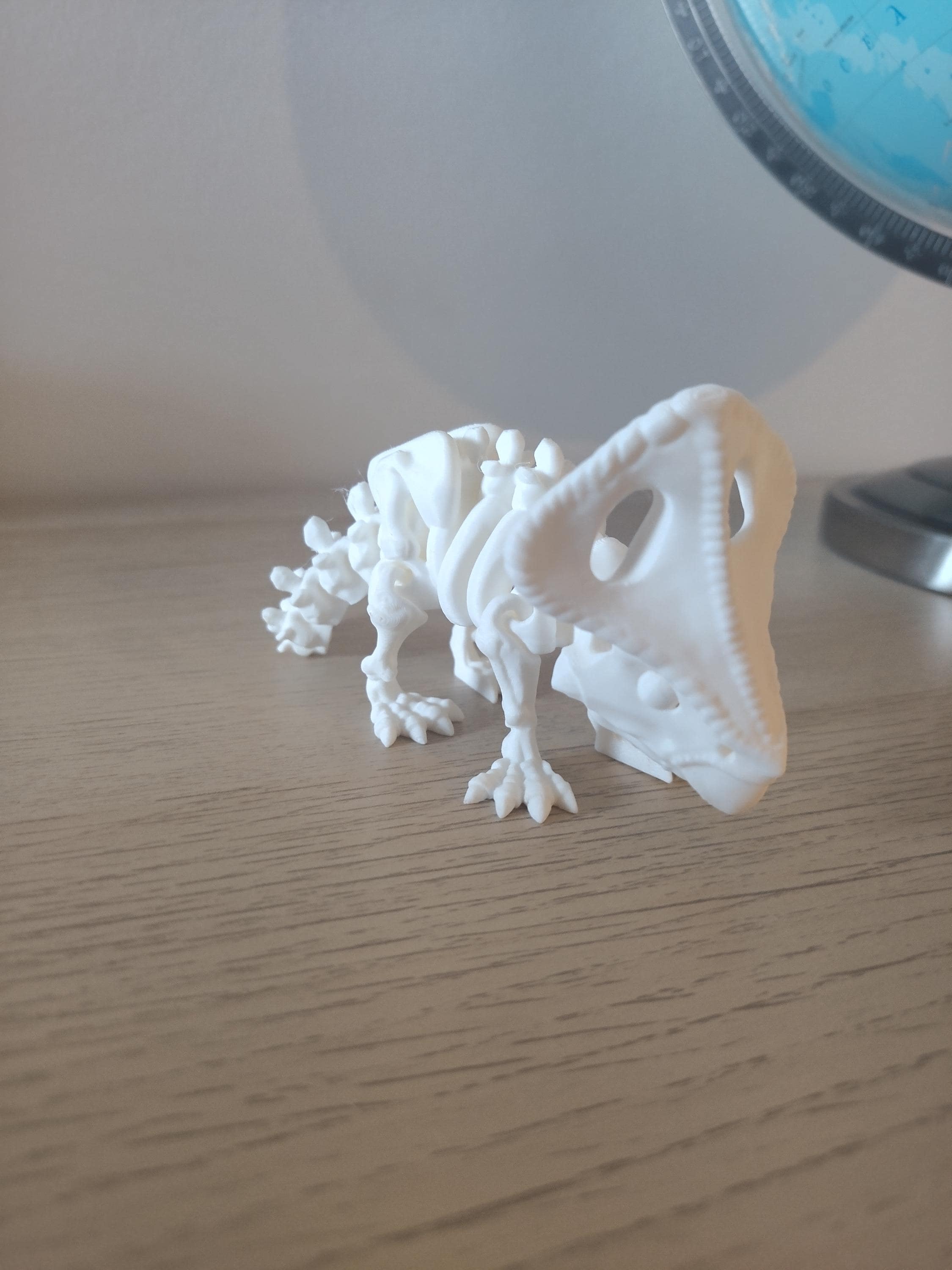 Bring the prehistoric world to life with this 3D printed articulated Triceratops skeleton β a fun and realistic model perfect for dinosaur lovers, collectors, or as a unique desk companion.