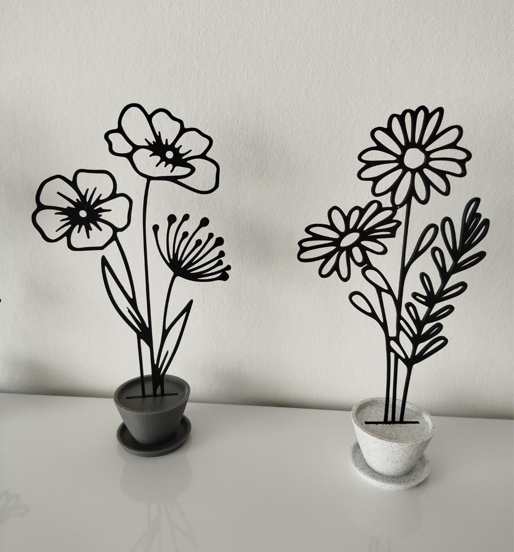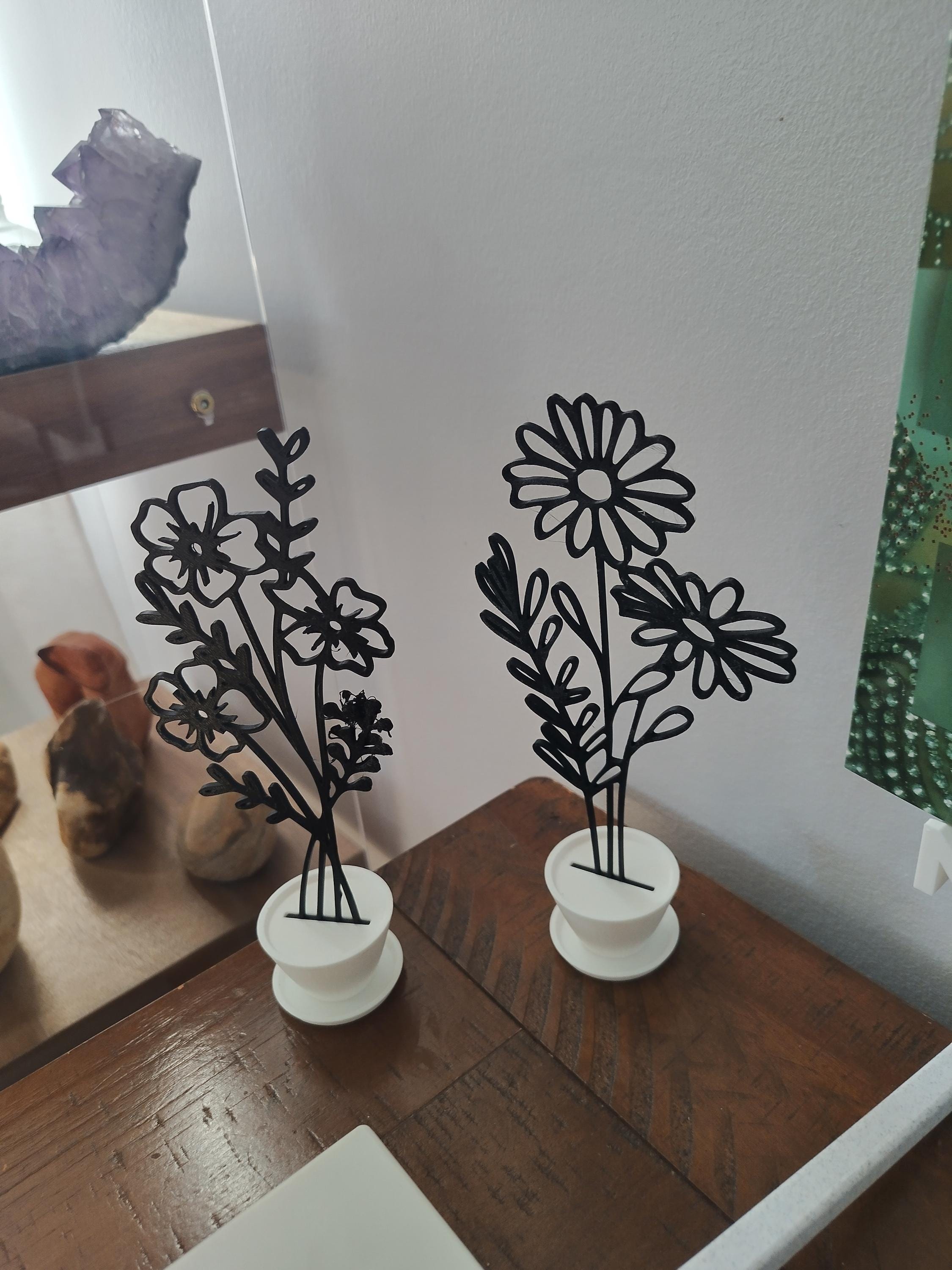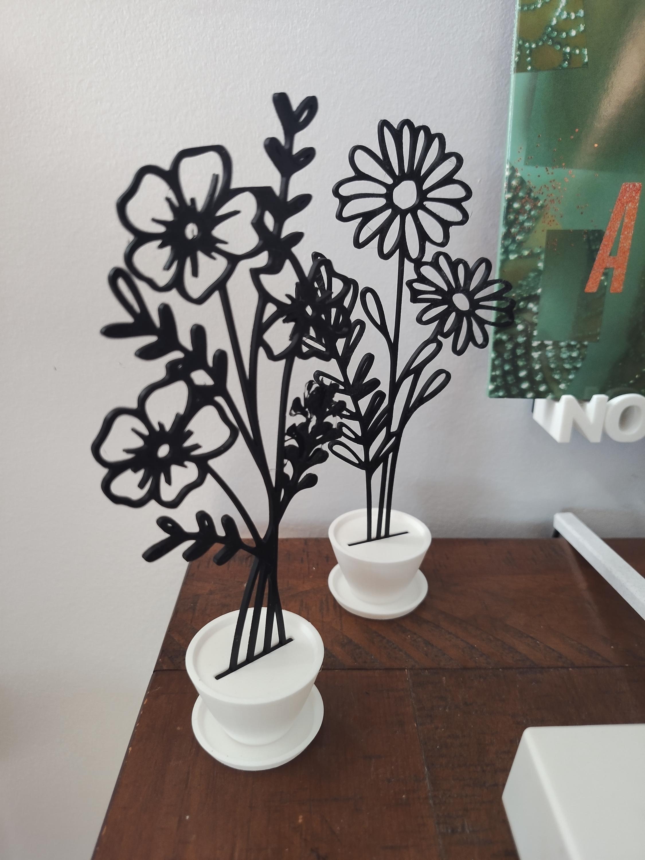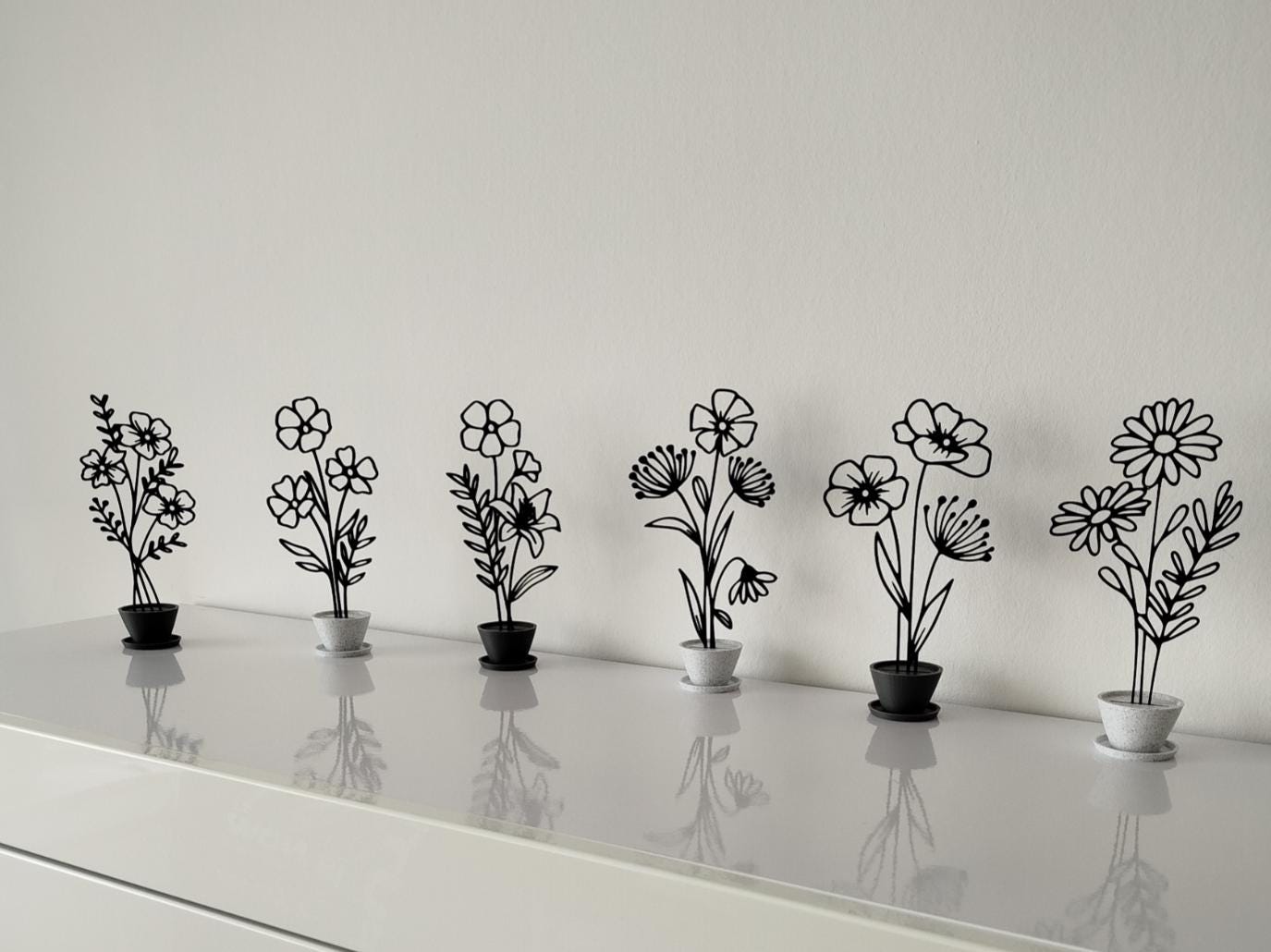 Tags: Minimalist Decor, Potted Flower, 3D Printed Art, Botanical Decor, Shelf Decor, Desk Decor, Modern Home, Plant Lover Gift, Easy Assembly, Unique Gift, Housewarming Gift, Scandinavian Decor, Black Flower Art
