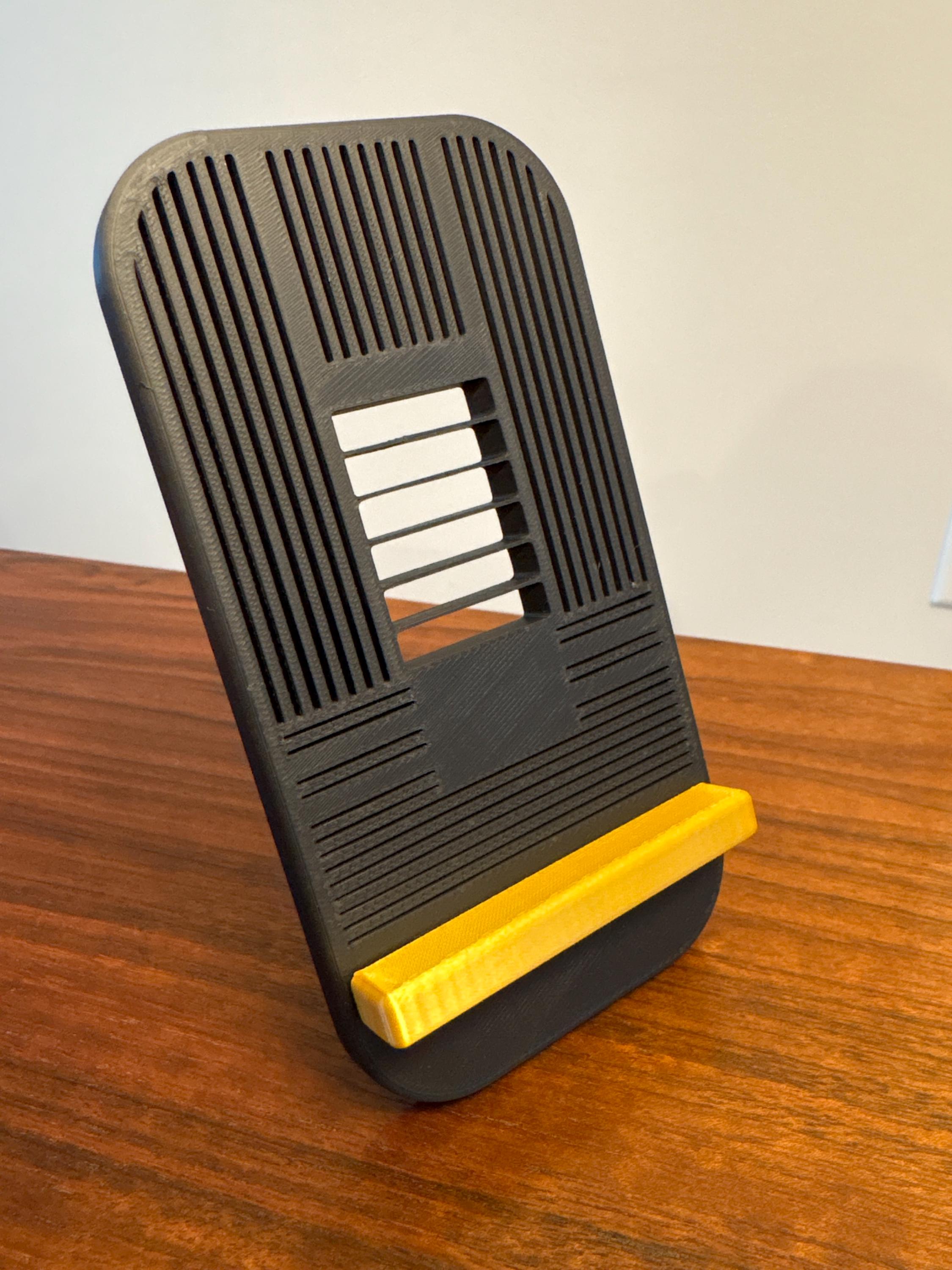 3d print phone holder is well made and cute, although the piece the phone rests on might be made a little deeper for stability. Item arrived later than promised, which might be understandable given the holidays, but no tracking was provided so it was impossible to know whether it would arrive late or if it was lost in the mail. Seller was helpful prior to purchase but did not respond when I reached out after item did not arrive days after expected delivery.