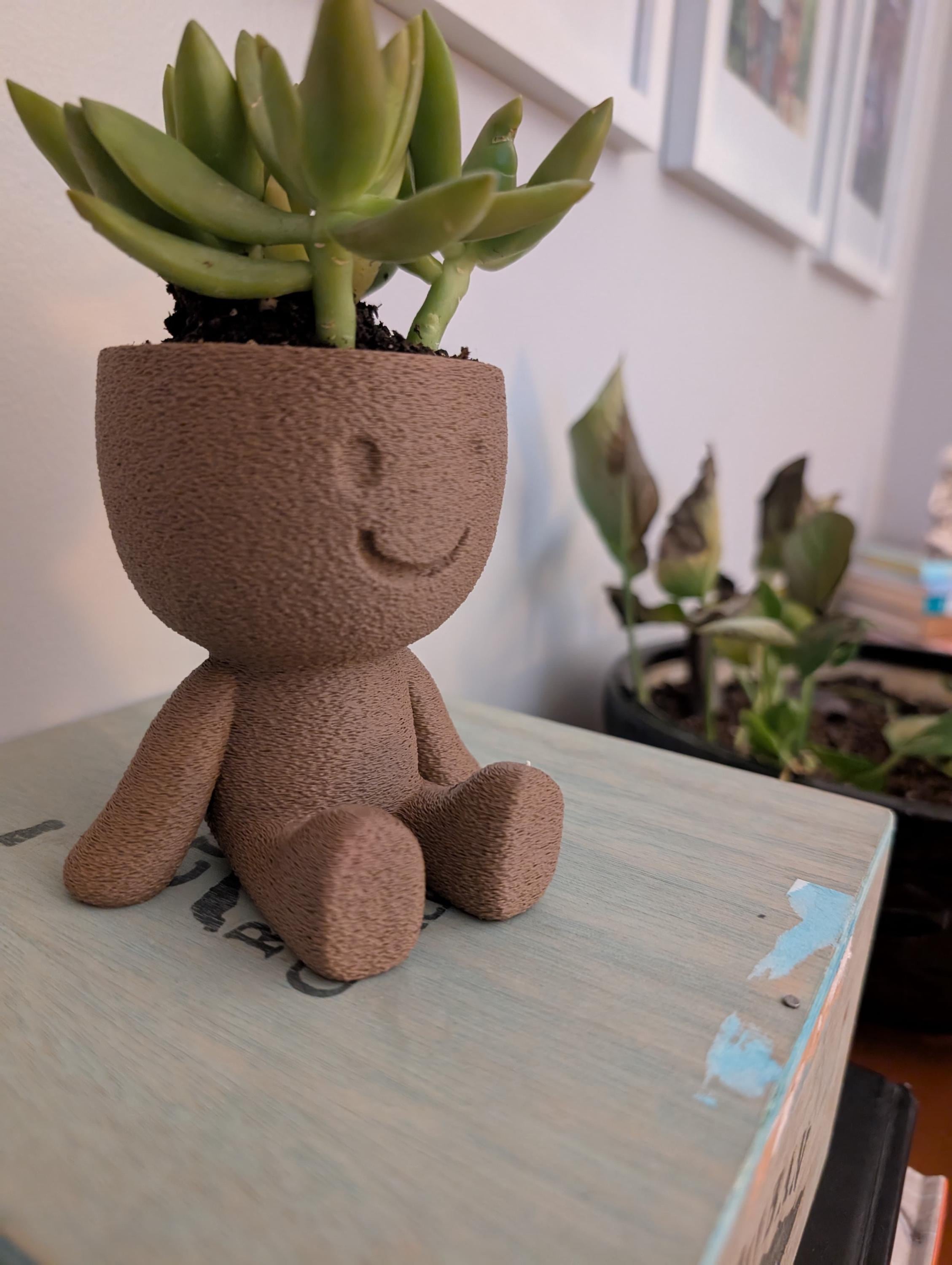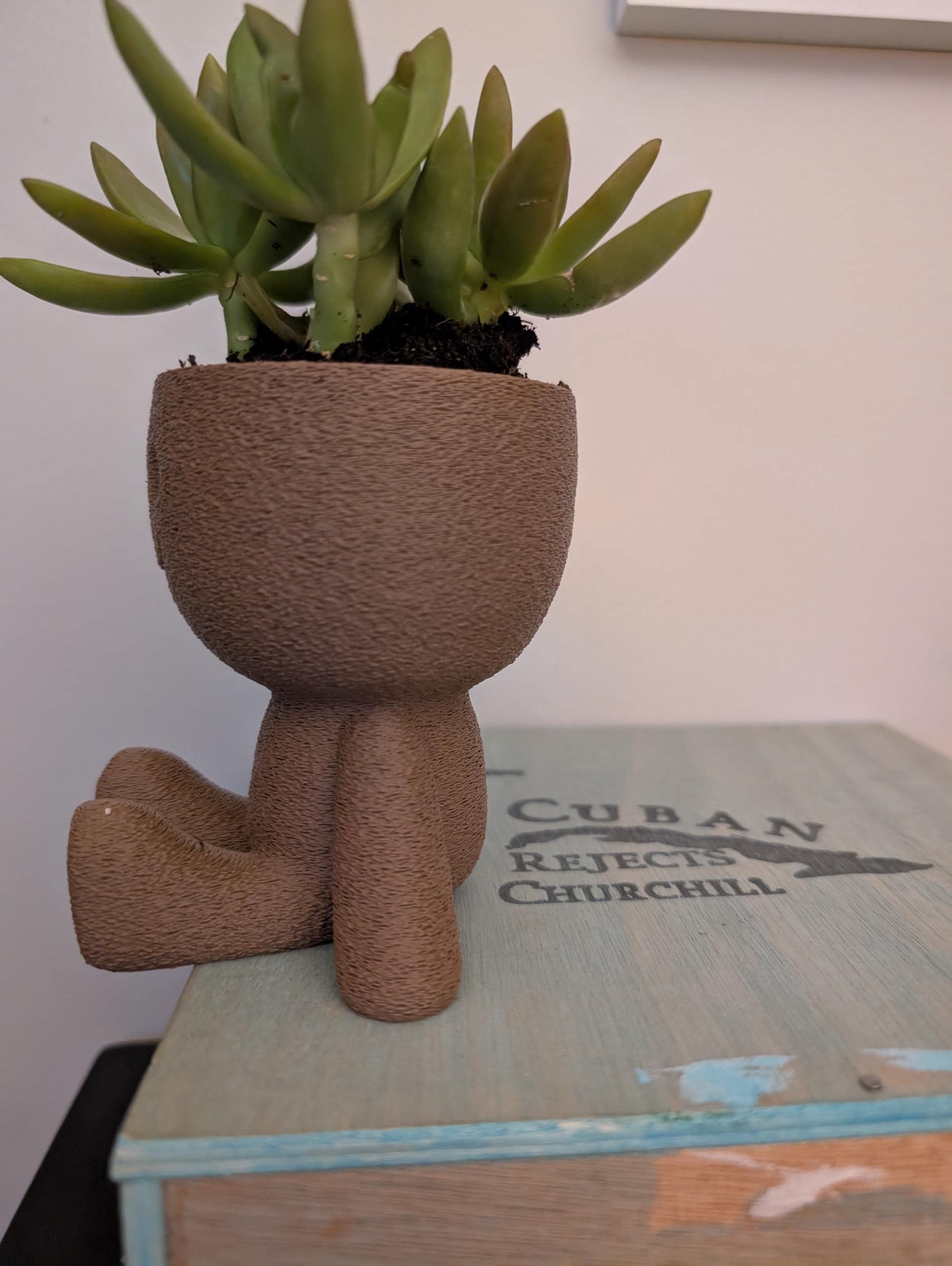 Planter Guy - Happy Figurine with Fuzzy Skin 🌿😊