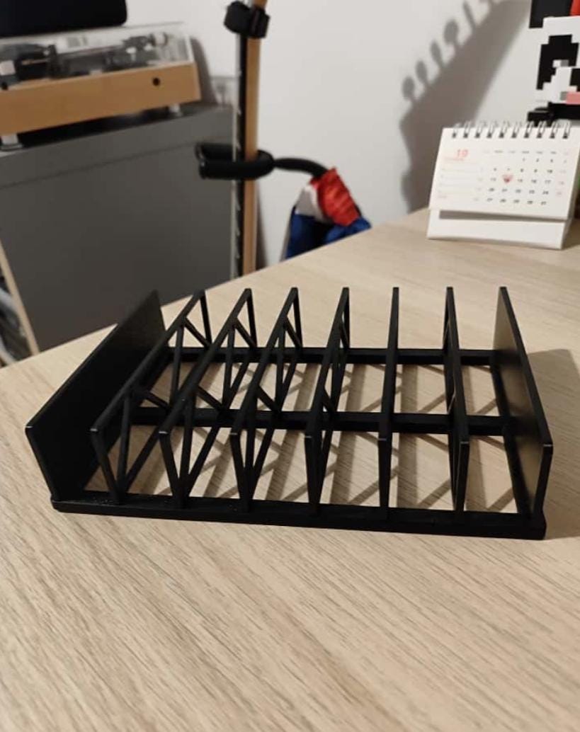 Elevate your space with this sleek and modern CD Rack 3D model! Designed with a minimalist aesthetic, this sturdy rack features a series of angled slots to neatly organize up to 7 CDs or DVDs.
