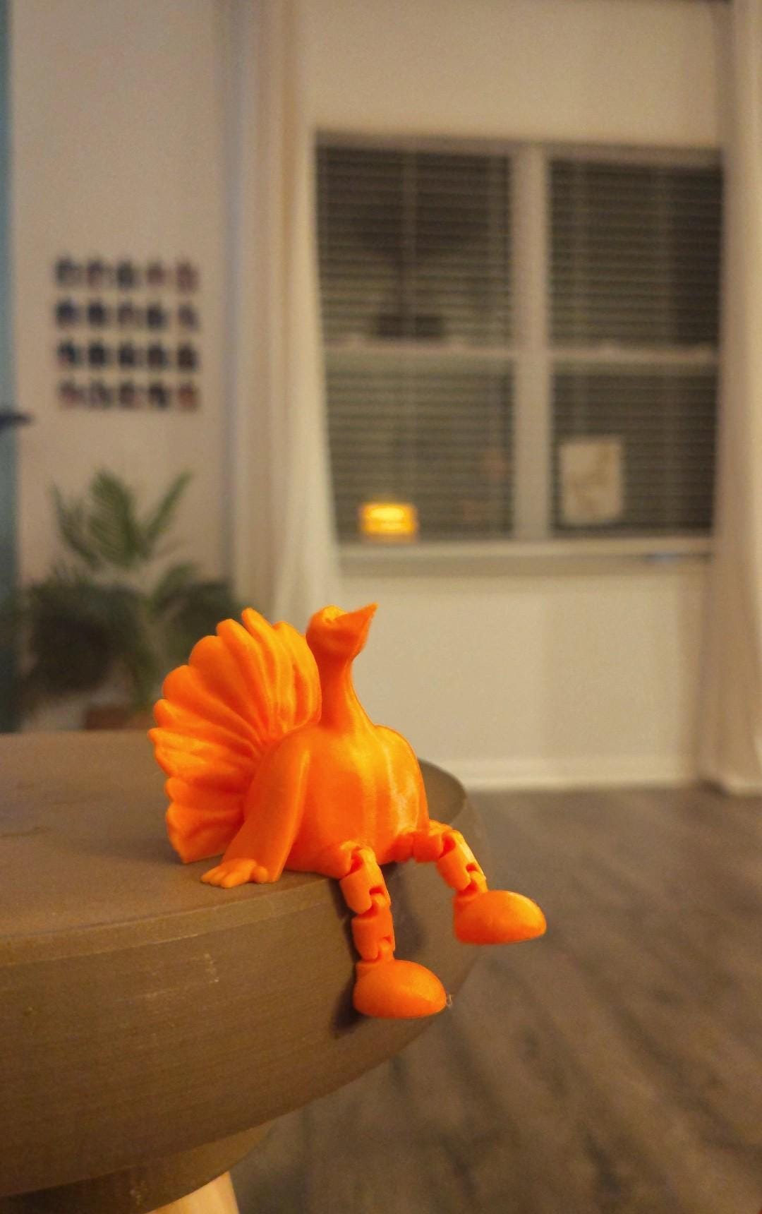Get ready to gobble up the laughs this holiday season! This hilarious 3D-printed articulated turkey is caught in the act of ultimate relaxation – lounging back with its little legs kicked up, ready to ditch the Thanksgiving dinner drama and just chill.