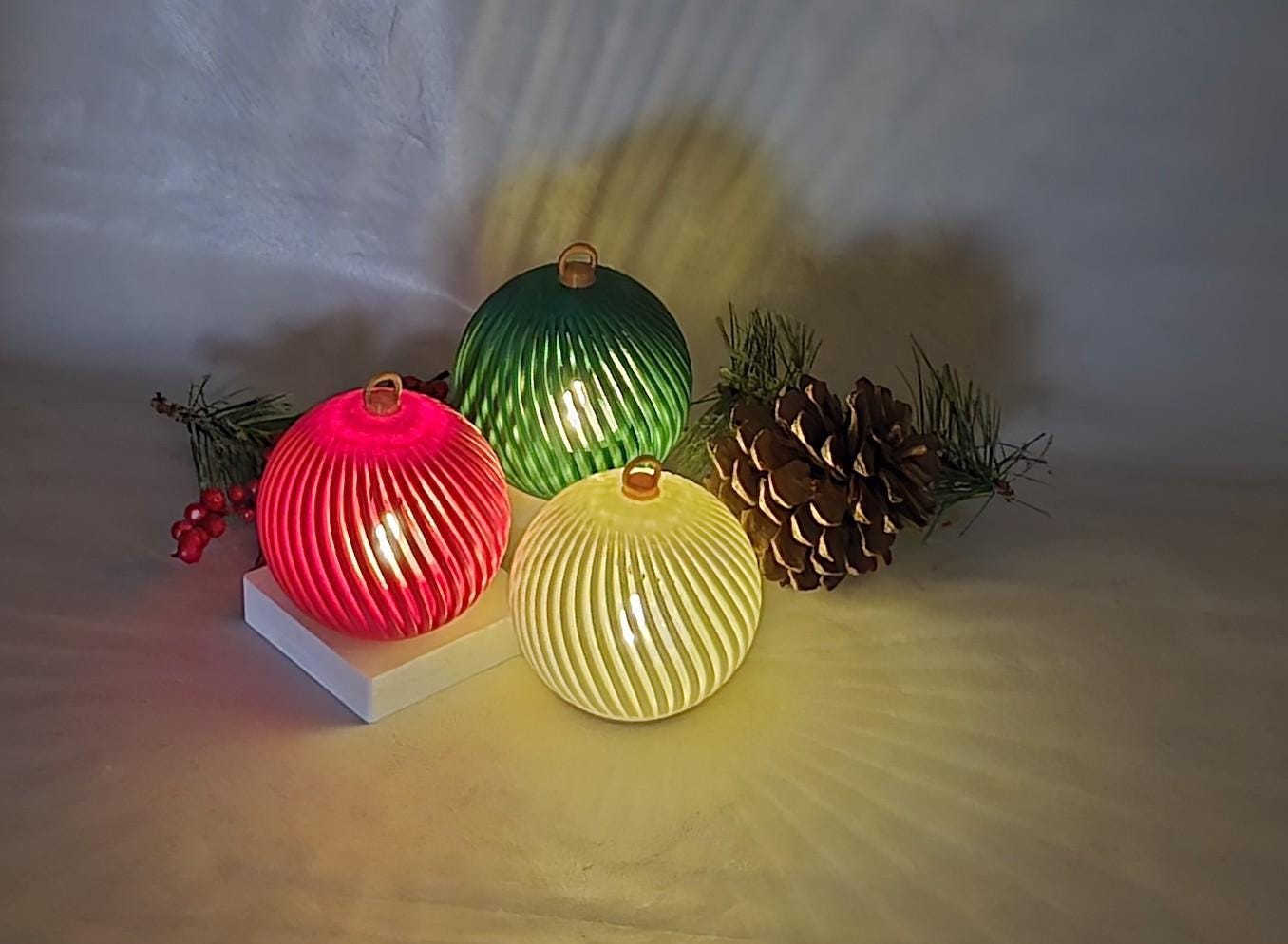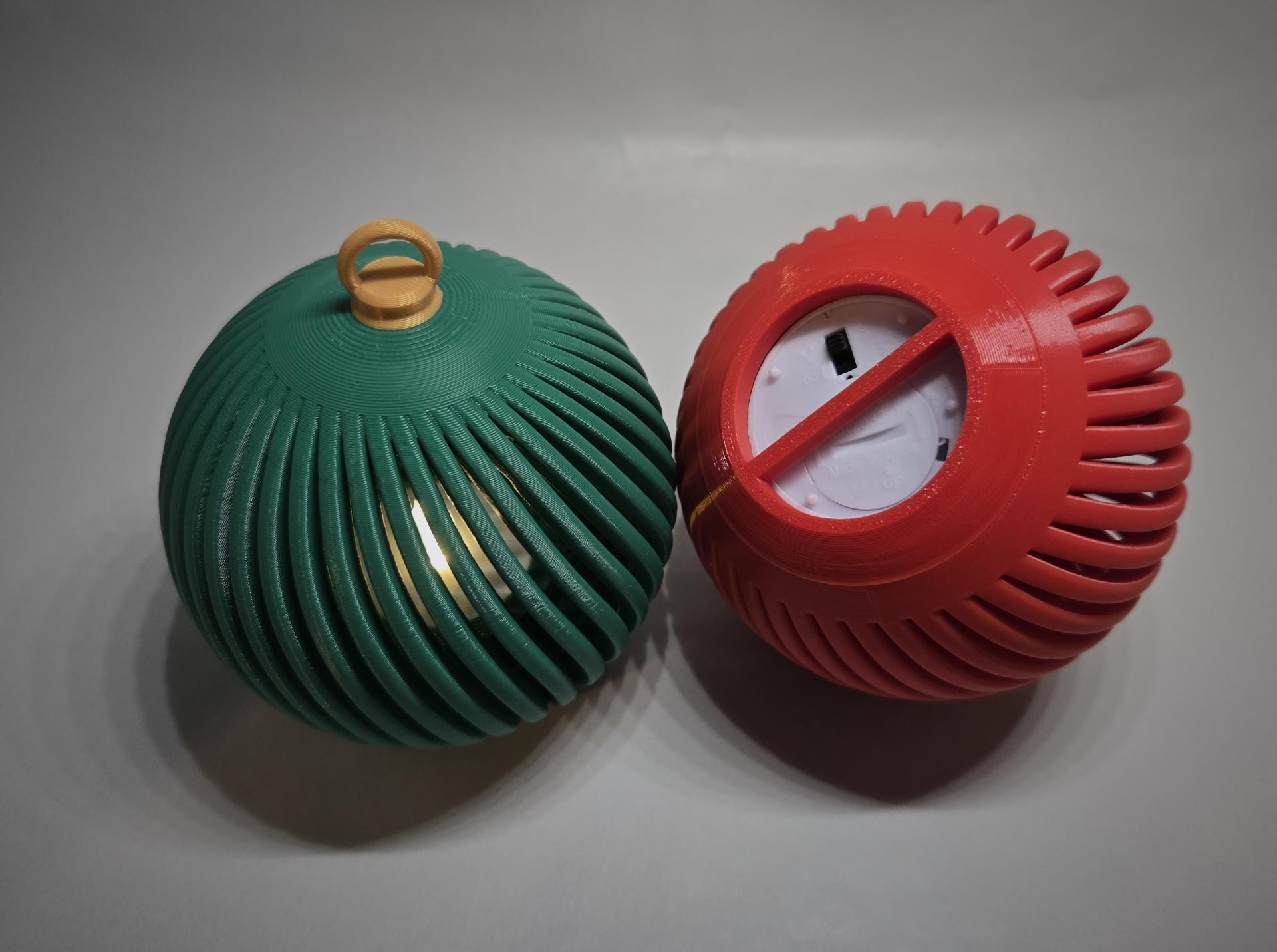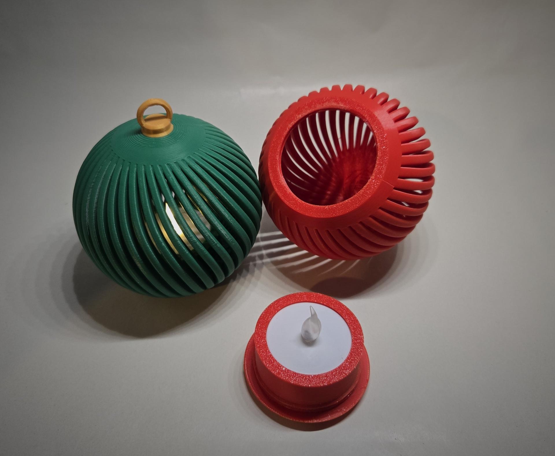 Spiral Christmas tree ornaments made to hang on a tree or sit on a mantle. I needed a specific design that could securely hold a battery operated votive candle that could be switch on and off without disassembling.