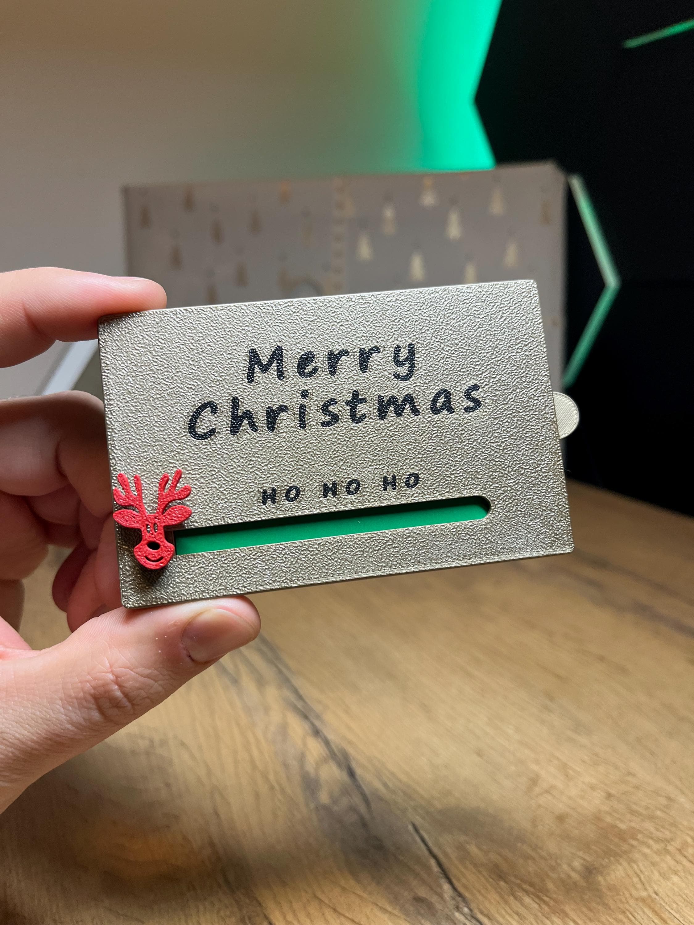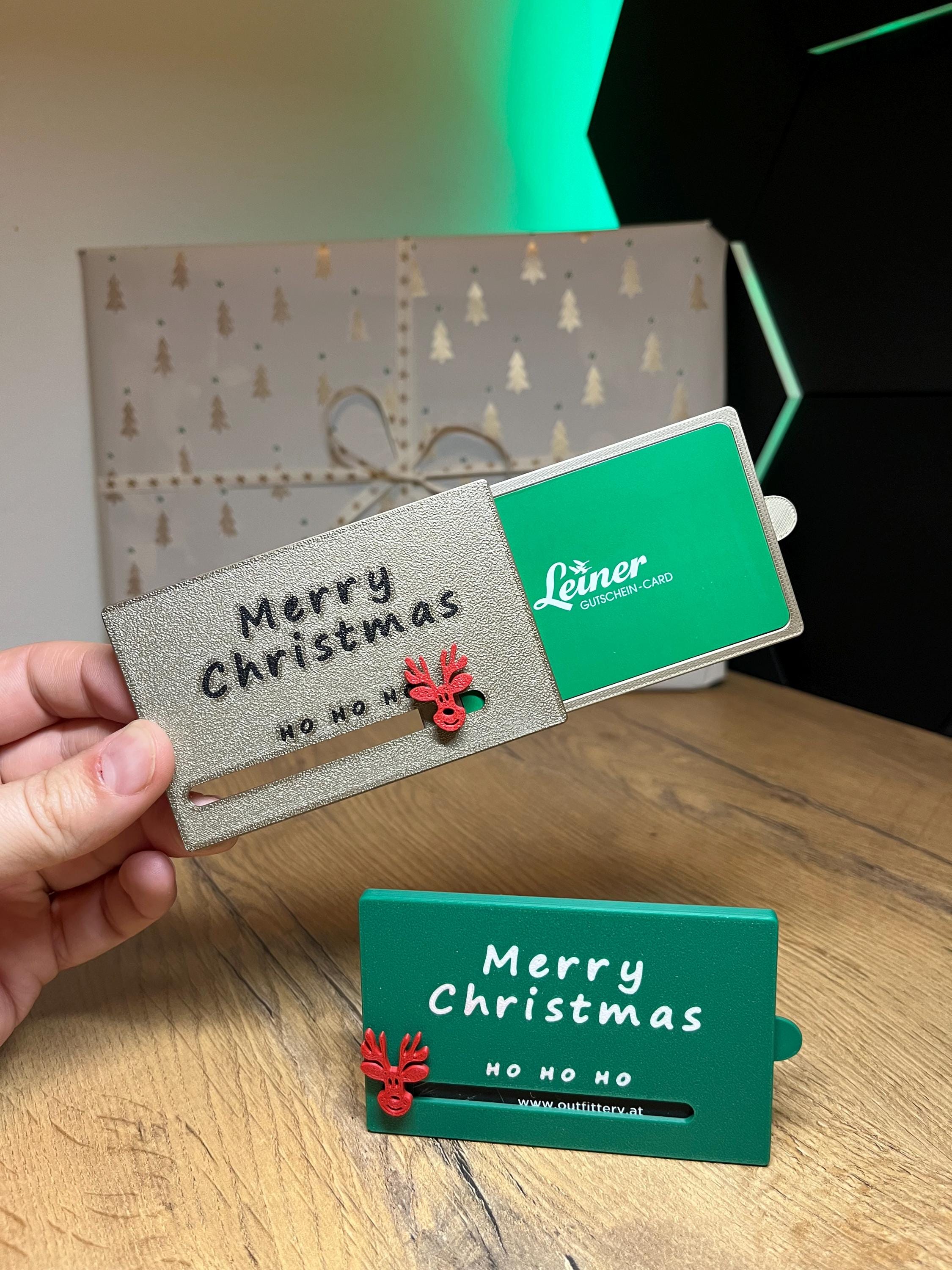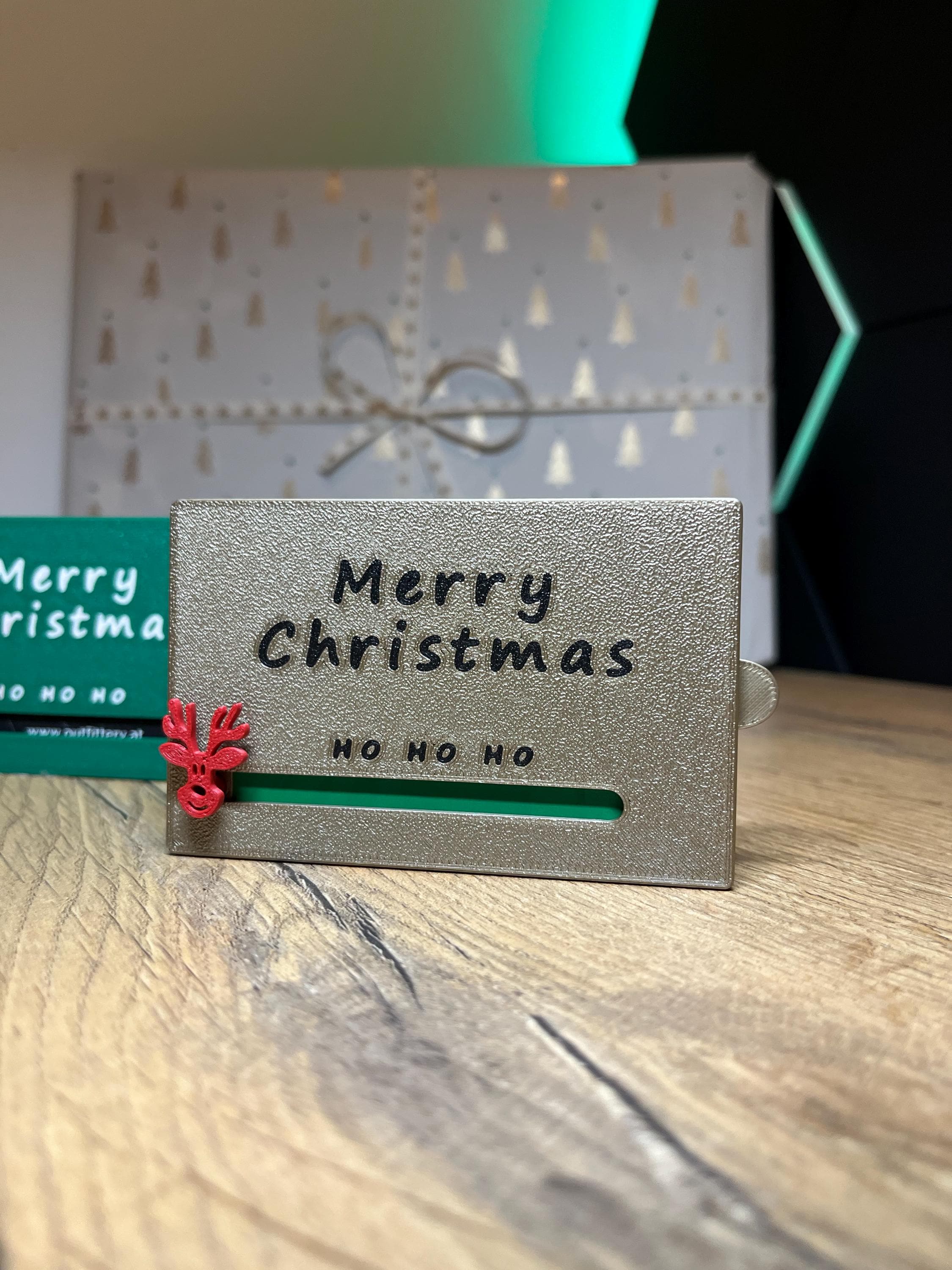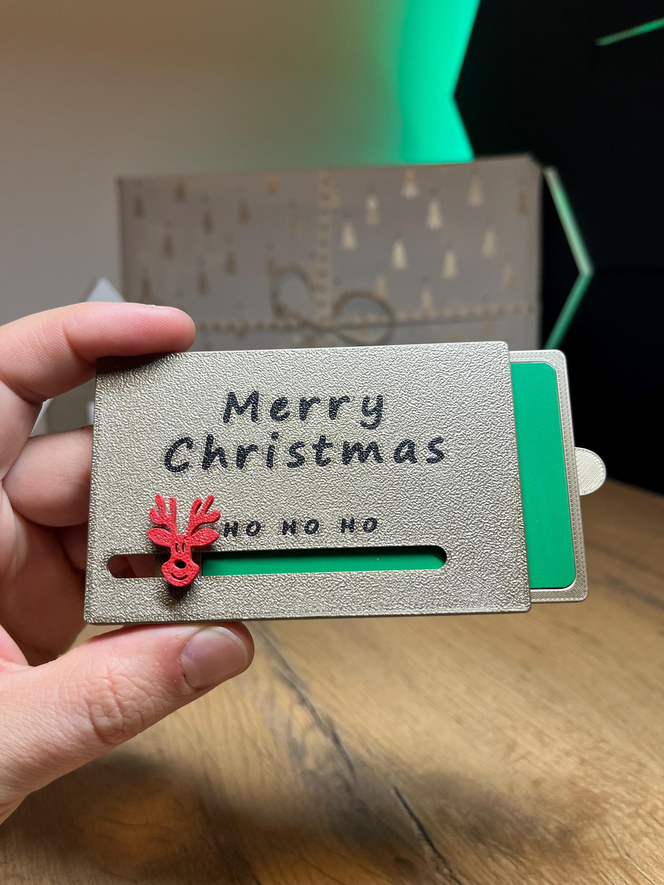 Celebrate the season with these adorable 3D-printed Christmas Gift Card Holders, featuring a festive “Merry Christmas” message and a cute little reindeer accent. Perfect for gifting money, store cards, digital gift cards, restaurant cards, or tickets — this holder turns a simple gift into something thoughtful and fun.