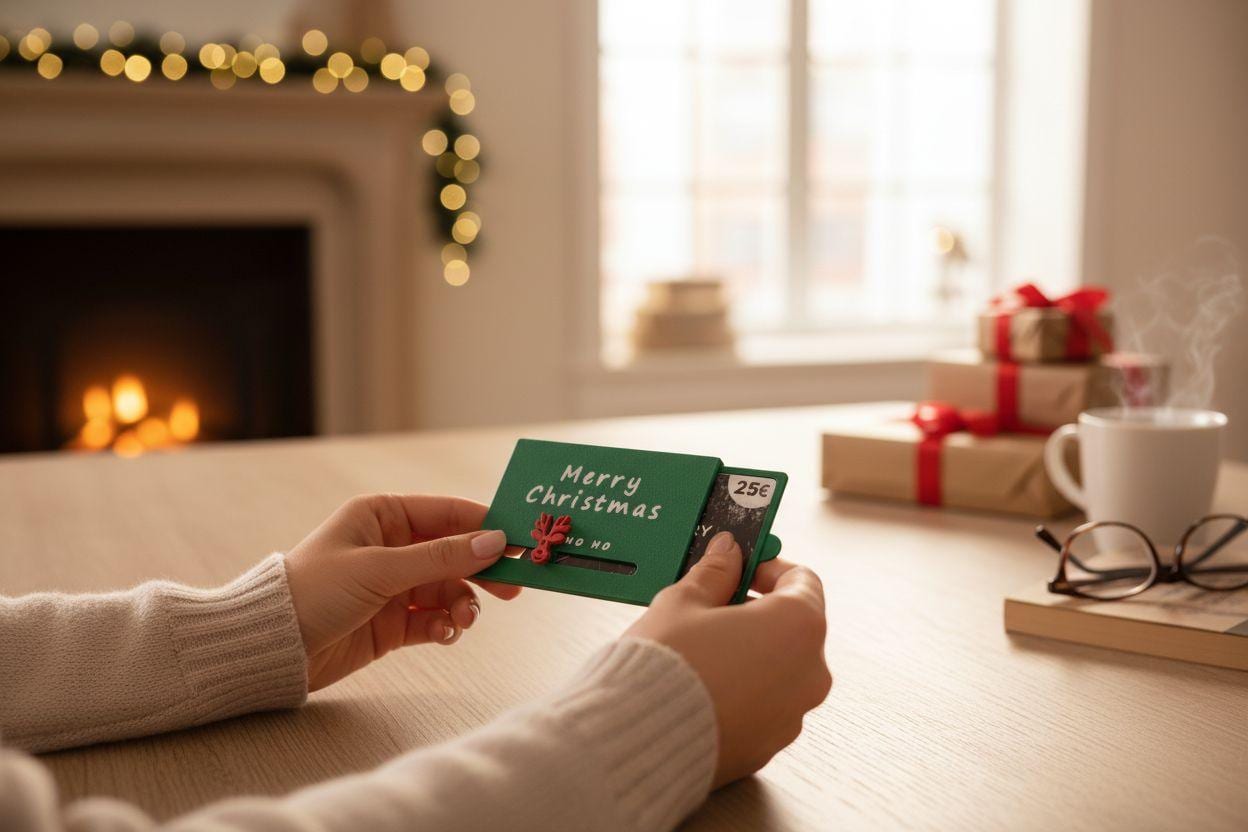 Each holder includes a smooth sliding mechanism that keeps the gift card securely inside while allowing the recipient to pull it out with ease. The cutout at the bottom reveals “HO HO HO,” adding a cheerful holiday touch.