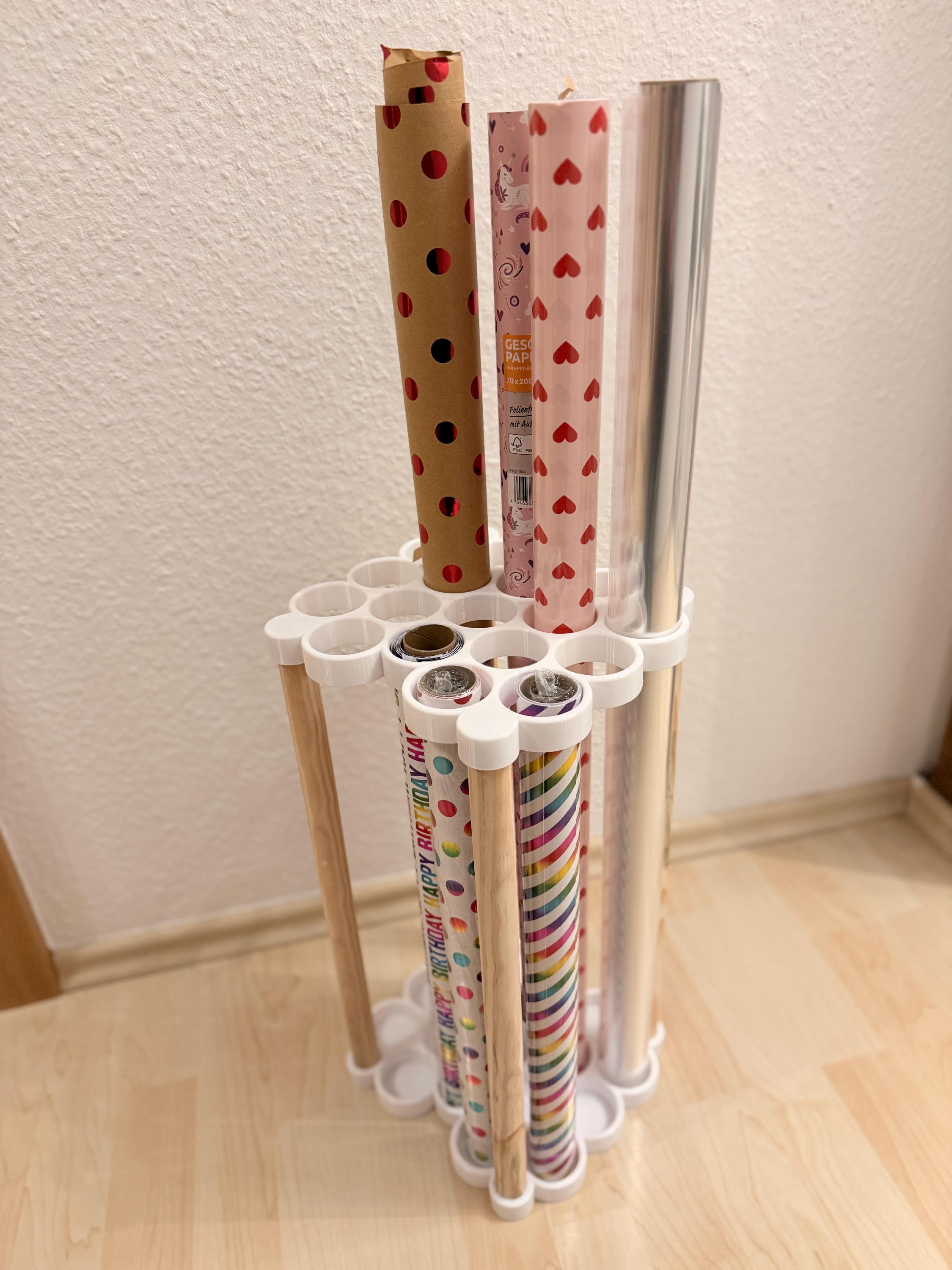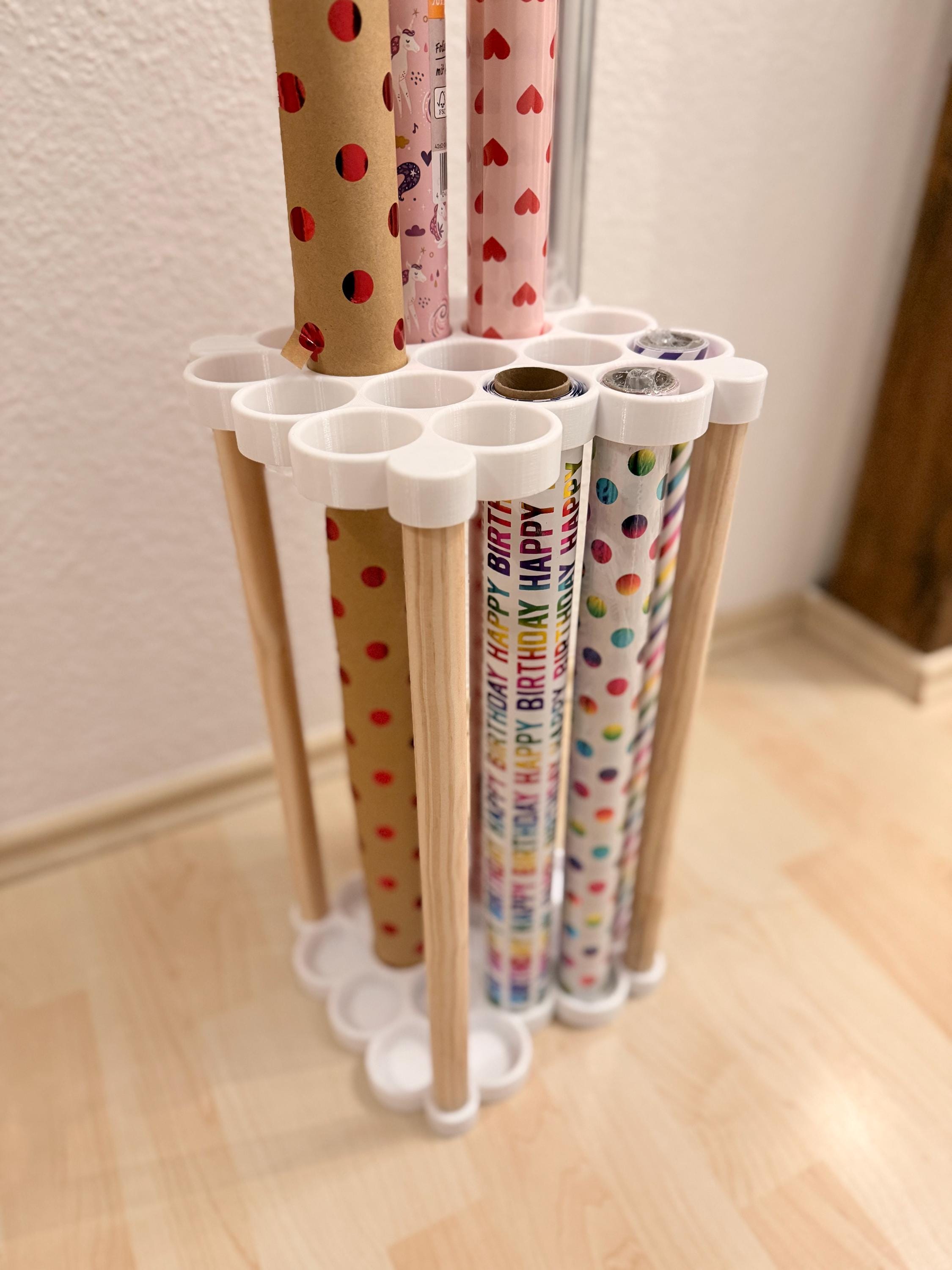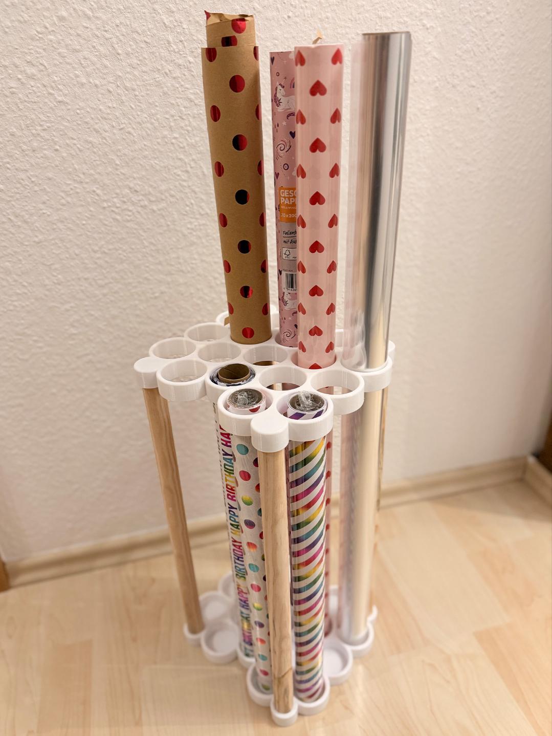 Wrapping Paper Holder for 17 Rolls • Gift Wrap Storage Stand • Vertical Roll Organizer
