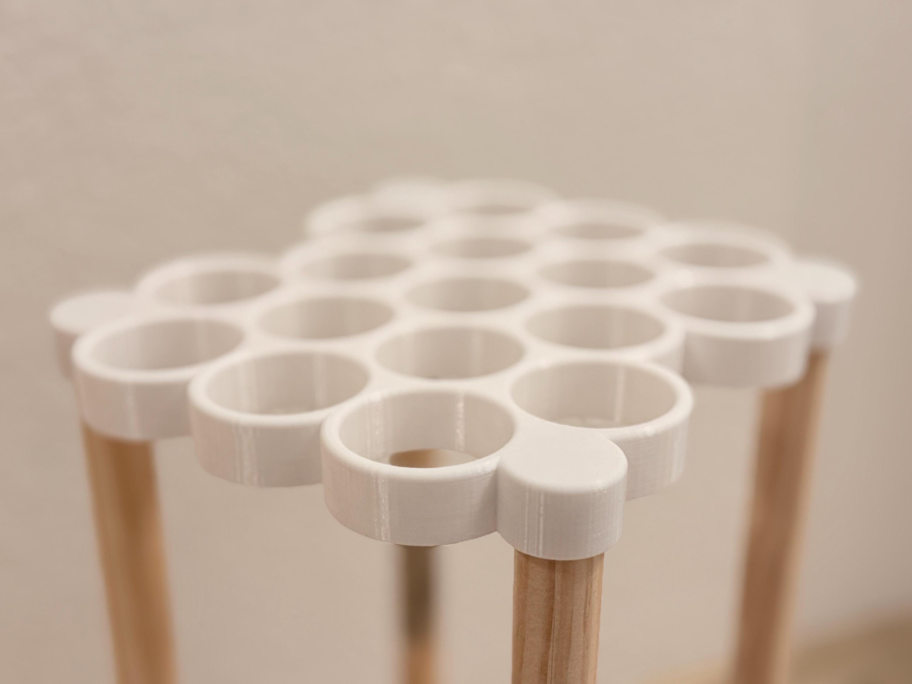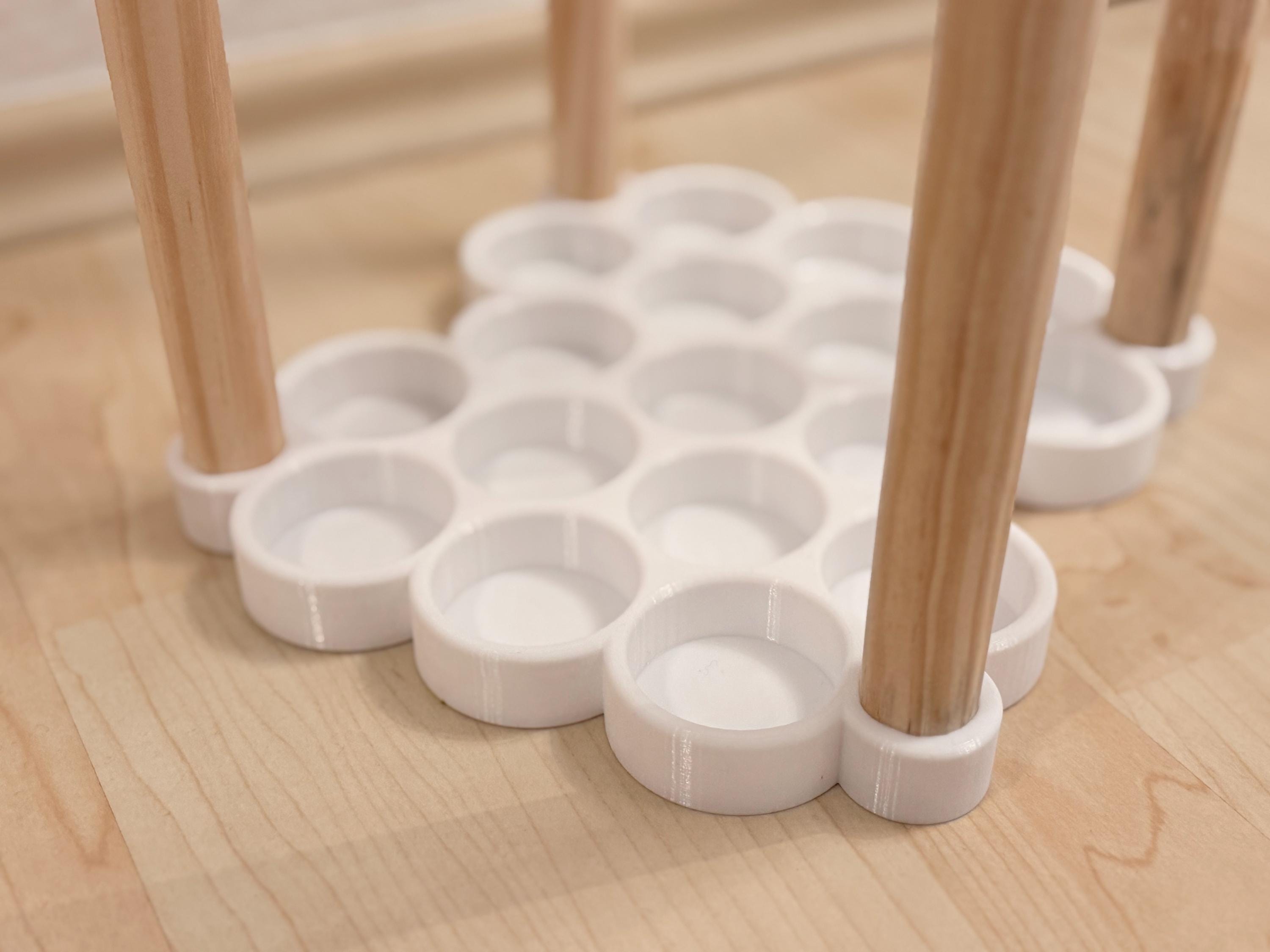 This sturdy Gift Wrap Stand is designed to hold up to 17 full-size rolls of wrapping paper — keeping them upright, visible, and easy to access. No more rolls falling over, unspooling, tearing, or getting crushed in closets!
