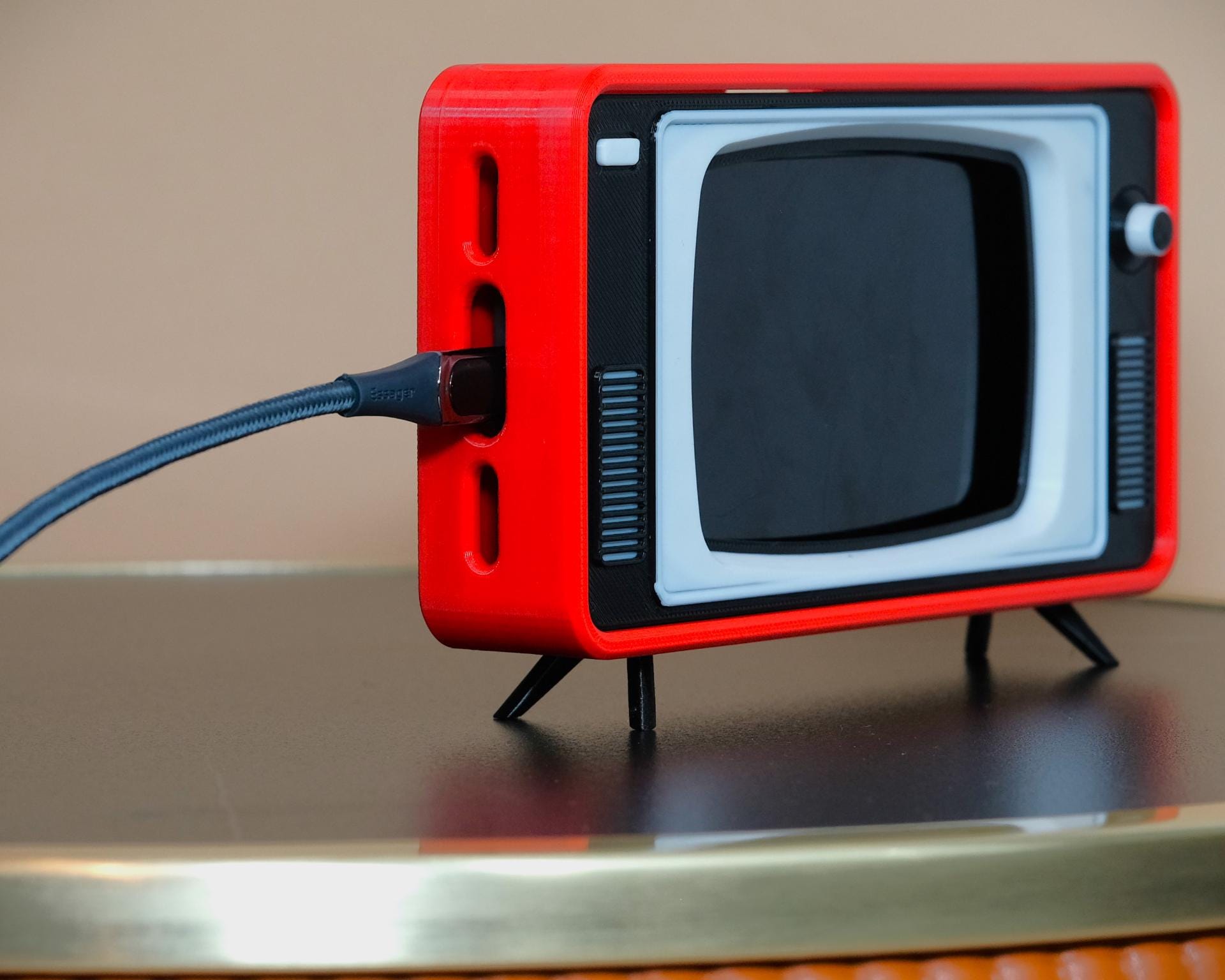 This 3D-printed Retro Mini TV Frame is designed to look like an old-school television set — complete with side dials, speaker grills, and mid-century legs. It’s the perfect way to display: