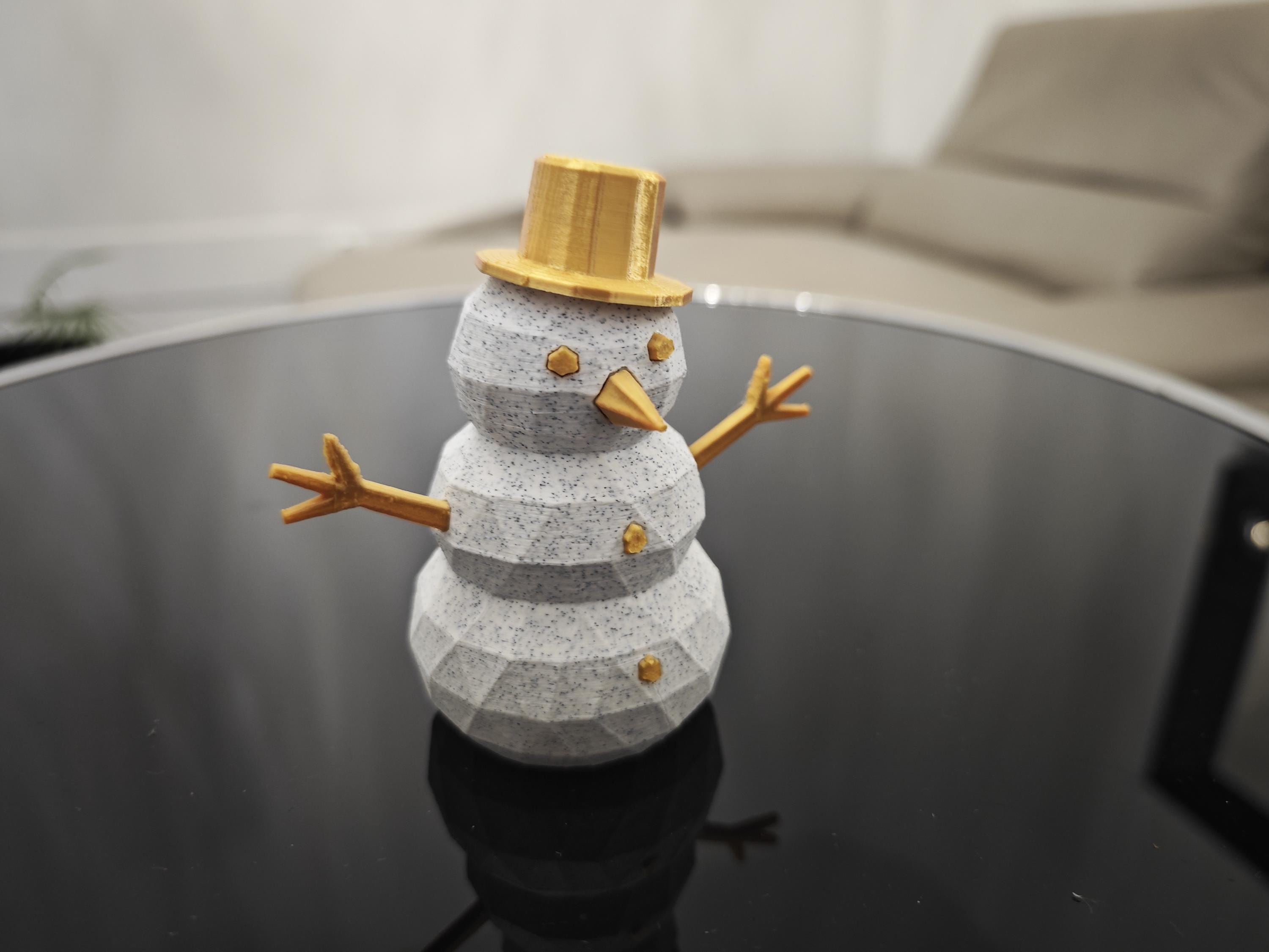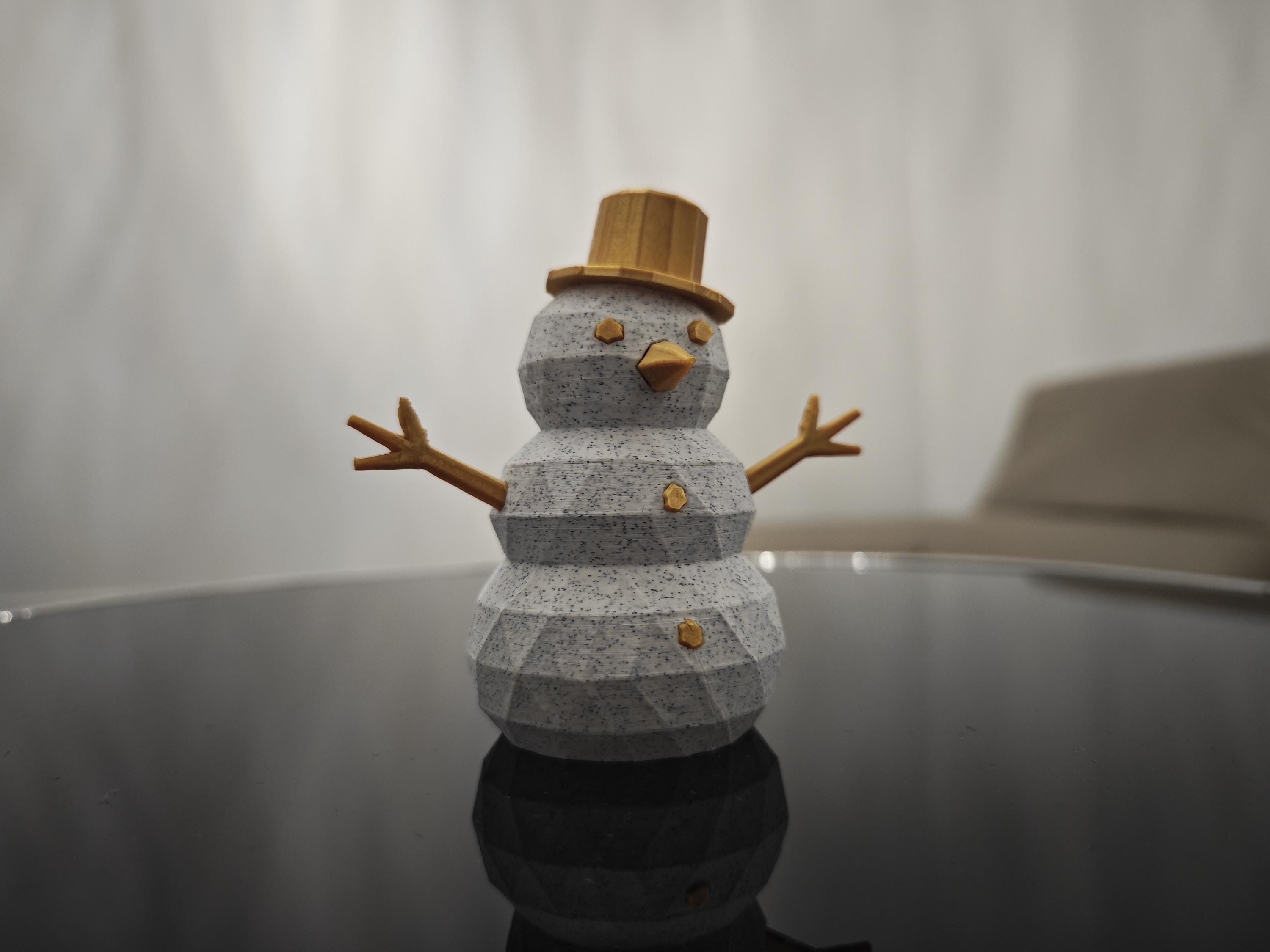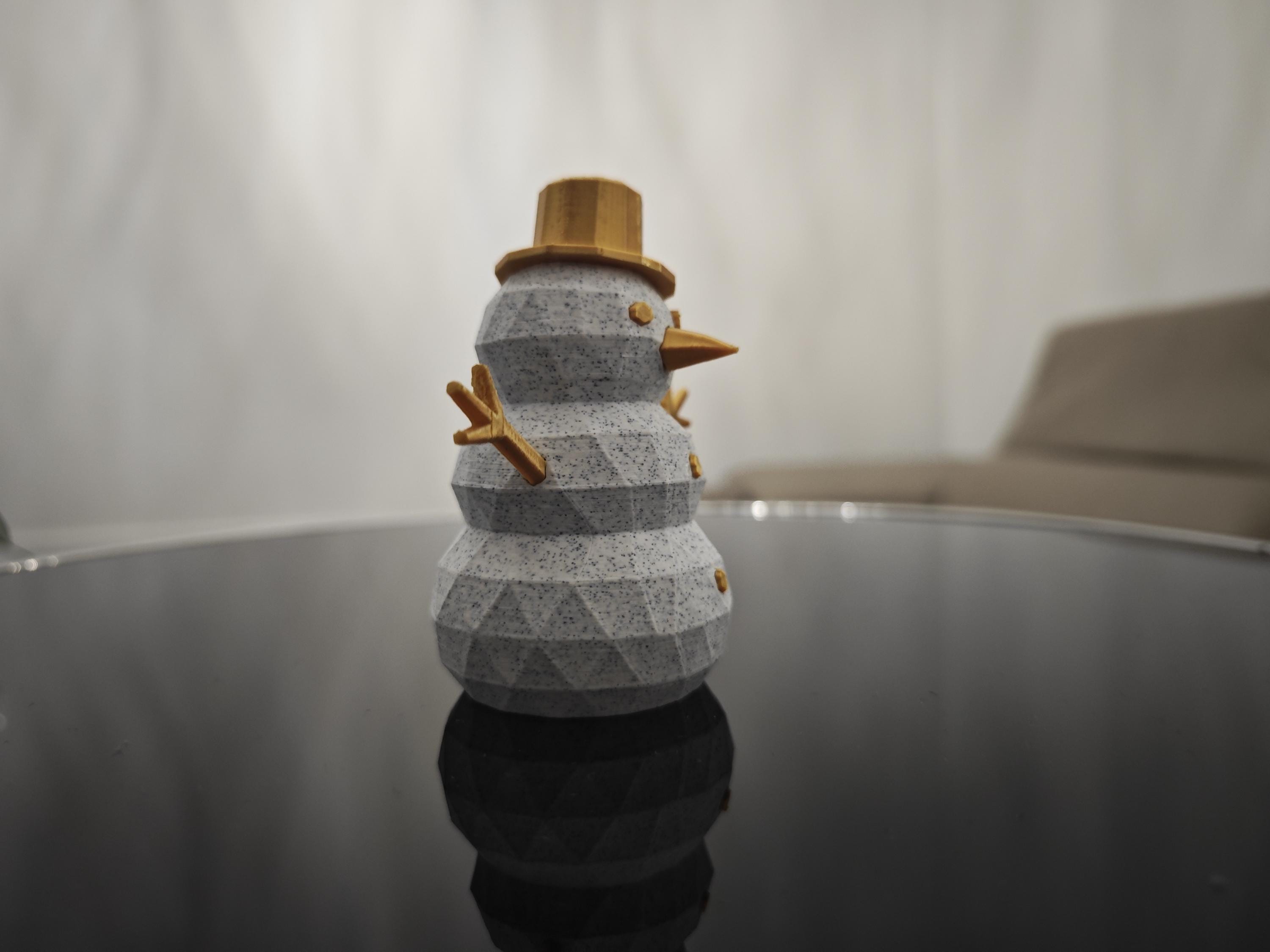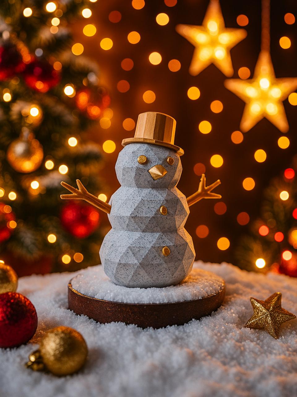 This 3D-printed Low-Poly Snowman Figurine blends minimalist geometric design with festive holiday charm. With its faceted body, clean edges, and stylish accessories, it makes a striking addition to your Christmas decor.