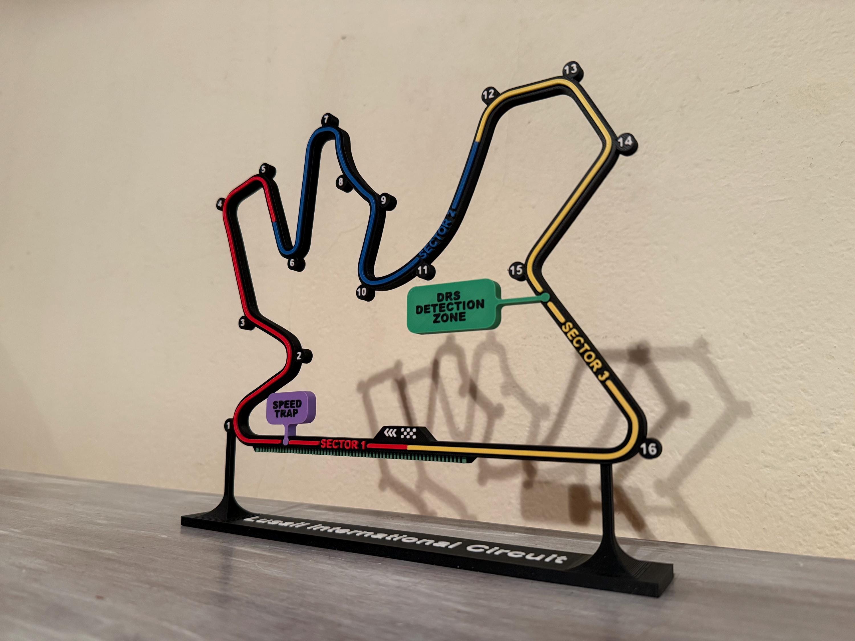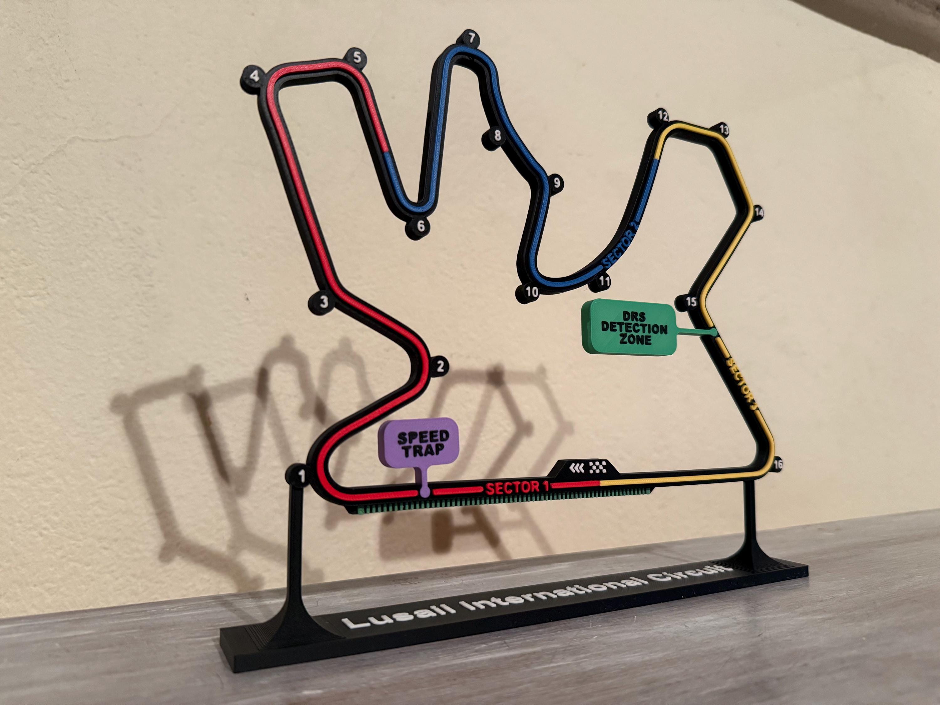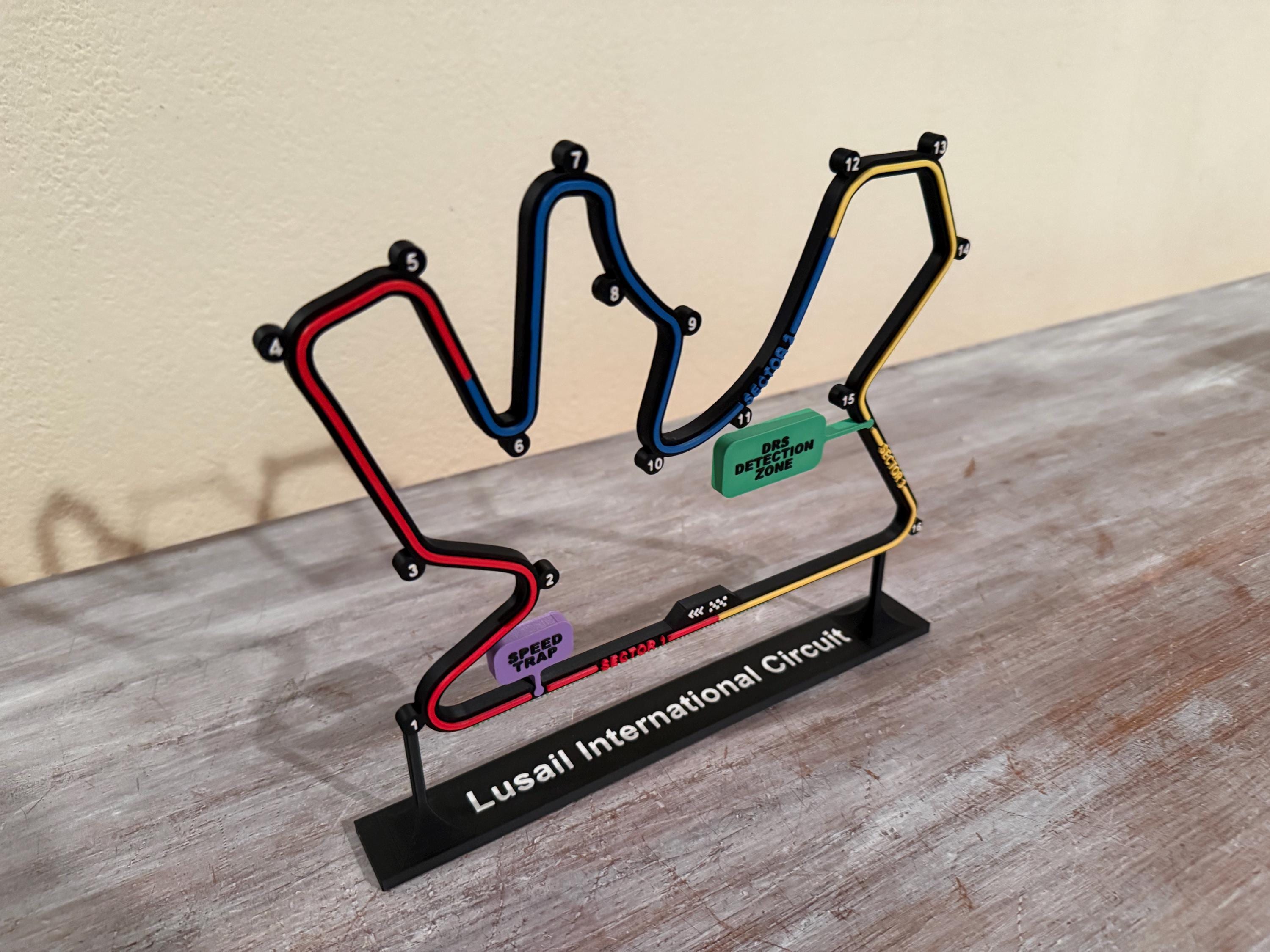 Each piece is printed with high-detail settings to capture the curves, turns, and signature layout of the Qatar Grand Prix circuit. Whether you're an F1 superfan or shopping for a race-lover, this makes the perfect gift or collectible display.