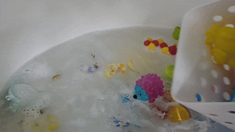 🛁 Easy Bath Toy Cleanup: Scoop, drain, and store in one motion!