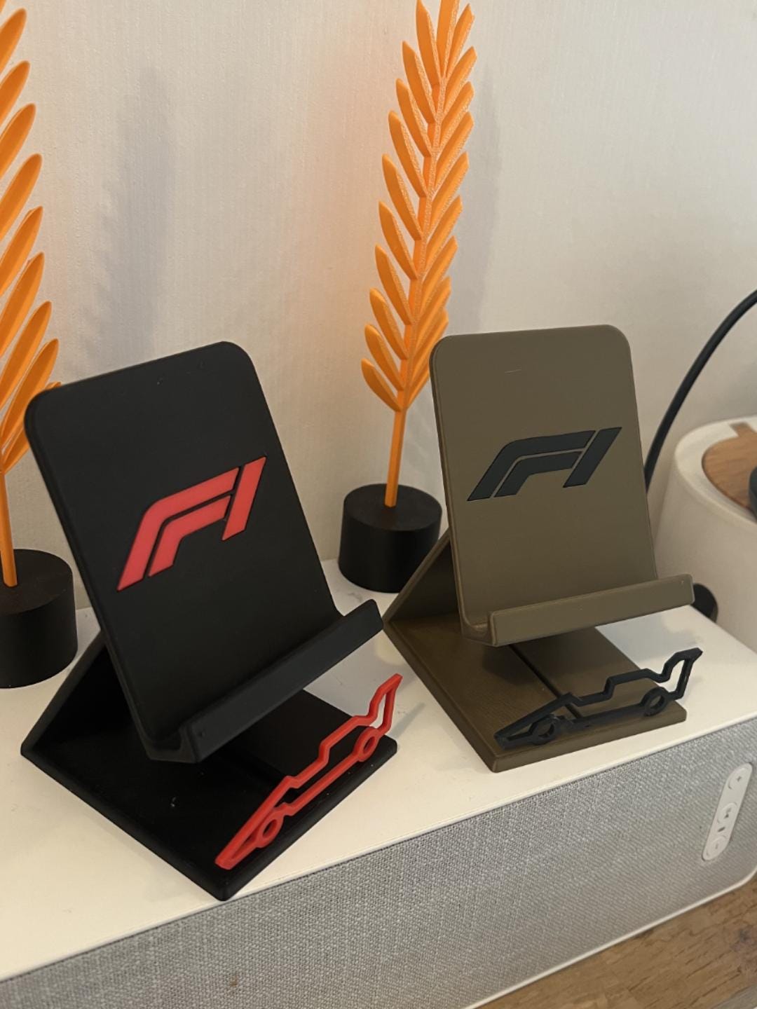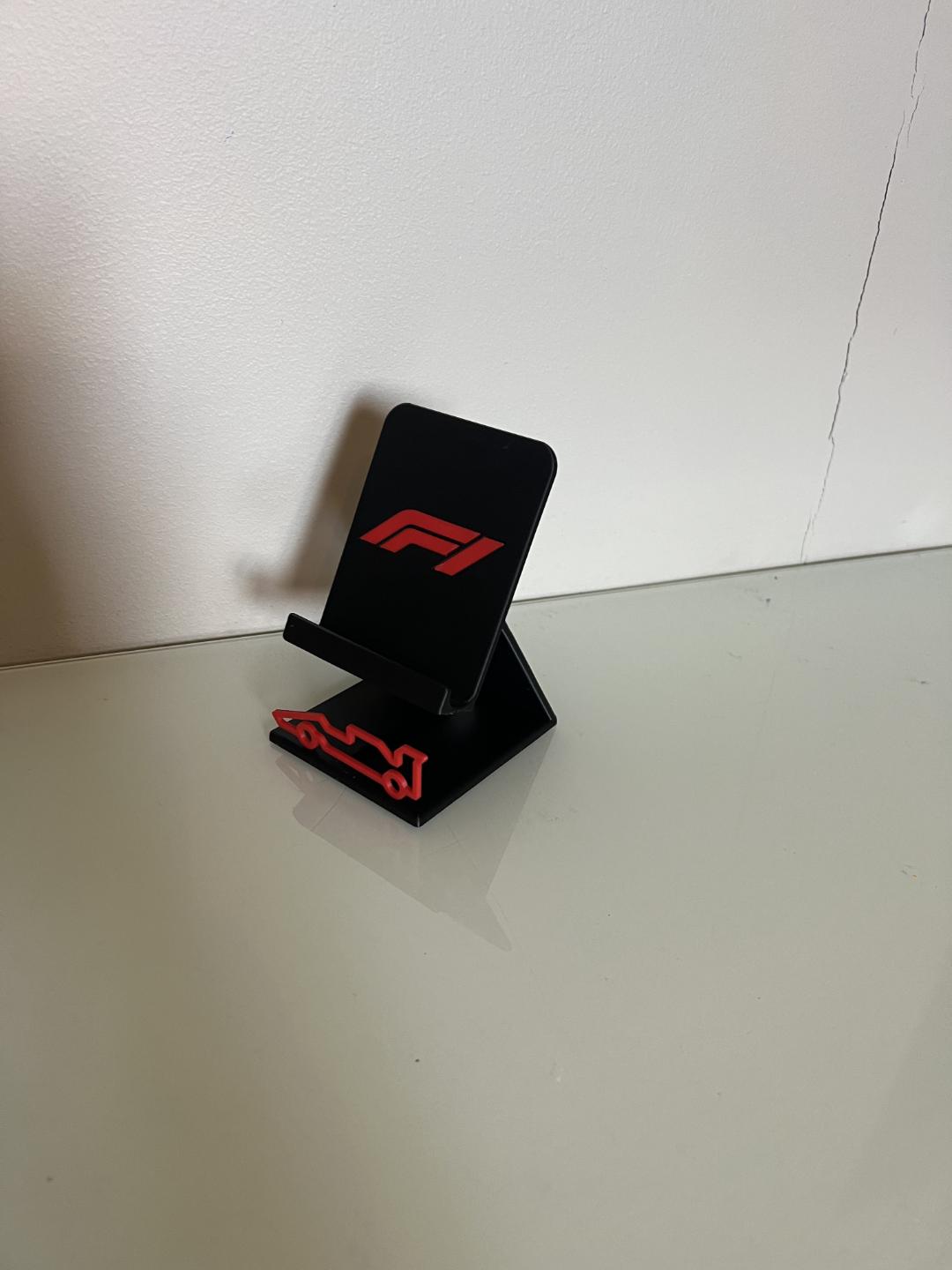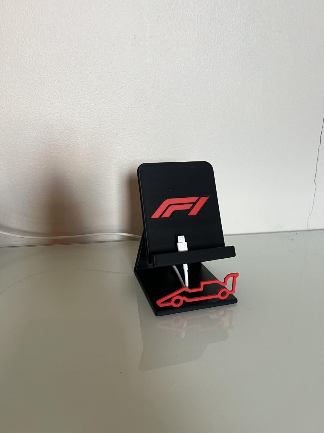 Bring race-day energy to your desk, nightstand, or gaming setup with this sleek 3D-printed F1 Phone Stand, featuring a bold F1 logo and matching track-shaped accent. Designed for form and function, it holds your device securely while adding a modern motorsport aesthetic.