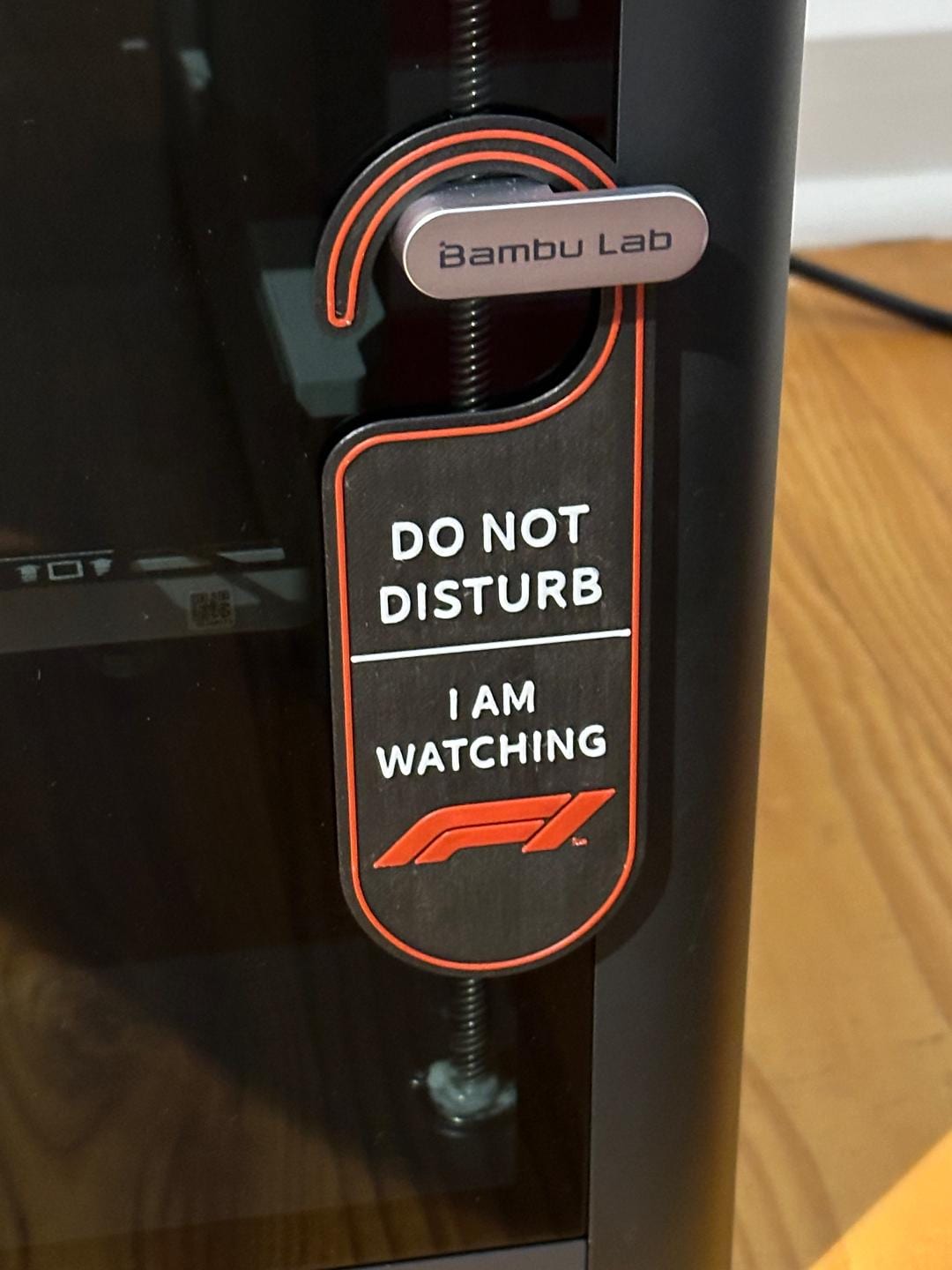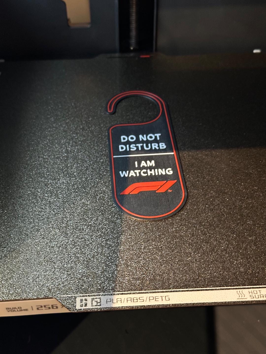 Add some race-day personality to your space with this bold, 3D-printed F1 “Do Not Disturb” Door Hanger — perfect for your office, bedroom, gaming setup, or even your 3D printer enclosure!